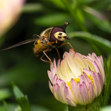 My hit rate for a decent photo is probably 1 in 100, but you expect that when working with such fine margins of exposure, depth of field and focus. But when a shot 'works', it is a joy. I shoot both with and without flash, using both full frame and micro four-thirds cameras, and invested in macro lenses to maximise the image size. It took a while to get anything like a decent photo, but you can practice in your back garden or anywhere there is insect life. Some of the life down in the grass is more violent than the Serengeti...