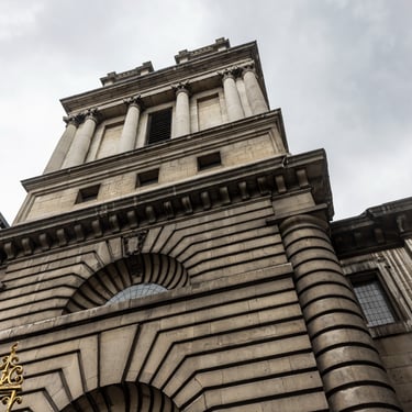 Construction began in 1716, with the new church finally opening on Easter Day in 1727. Compared to the other 5 churches, St Mary Woolnoth is small, more like a chapel than a parish church. This was born of necessity - although we can now enjoy views of the front entrance across King William Street, it would have been hemmed in by houses in a tight matrix of alleyways. This may explain the intricacy of the Lombard Street façade (the image below), on the northern side which allowed better views.